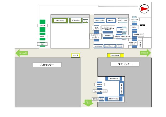 例年通り文化センターにて、大会本部やお楽しみ抽選会場、出店ブースを用意しています。