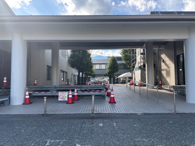 ①メイン会場入口ですが、工事のため、入口が非常に狭くなっております。お越しの際はお気をつけて、またスタートへの整列のご移動は早めに、係員の指示に従っていただくようご協力をお願いいたします。